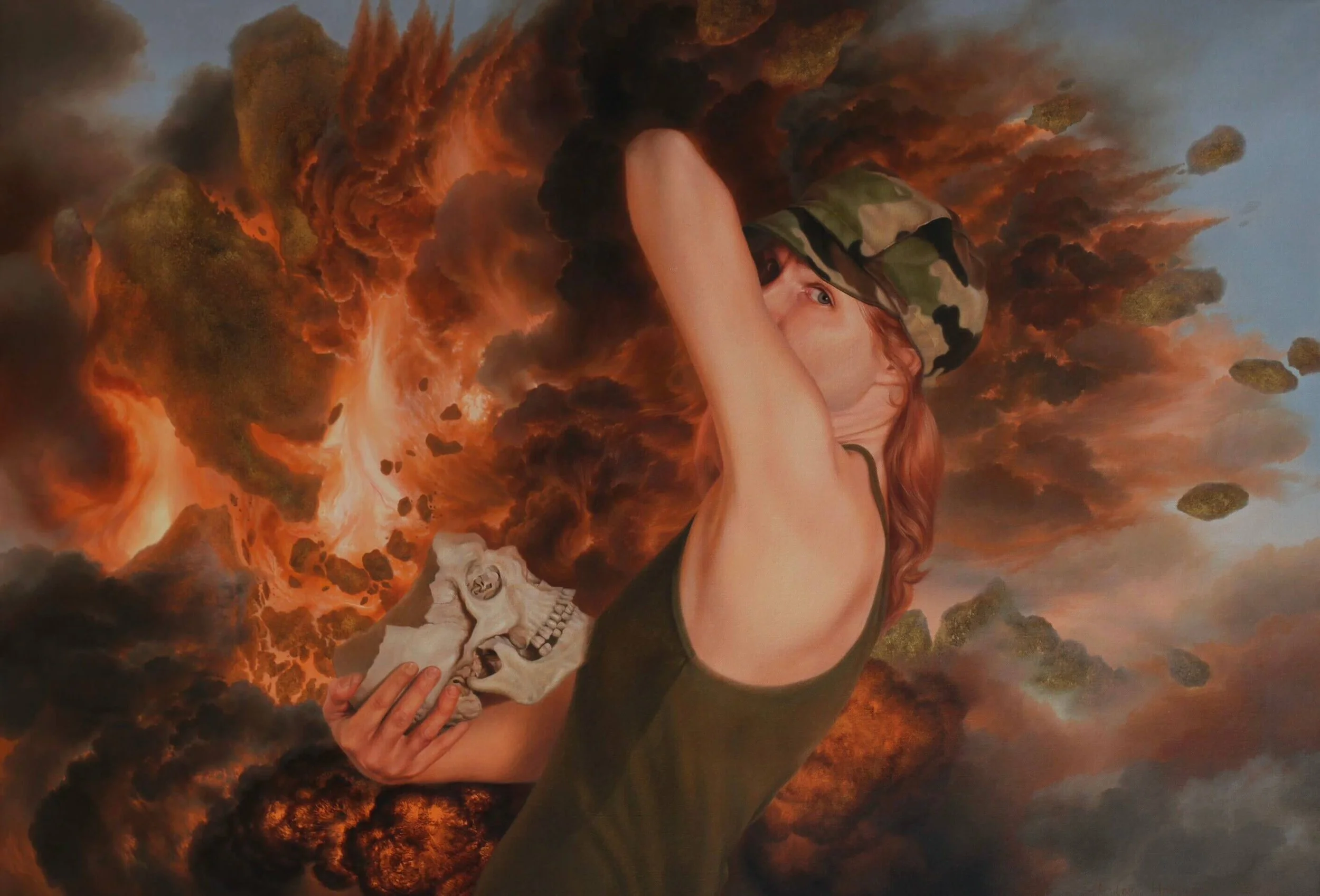 Troj’s work seamlessly combines traditional painting techniques with postmodern elements, producing Renaissance-style pieces that challenge societal conformity. Deeply inspired by Japanese culture, her landscapes often feature nude Renaissance figures alongside unusual characters and icons, reflecting her fascination with the beauty of imperfection and the realities beneath surface appearances.