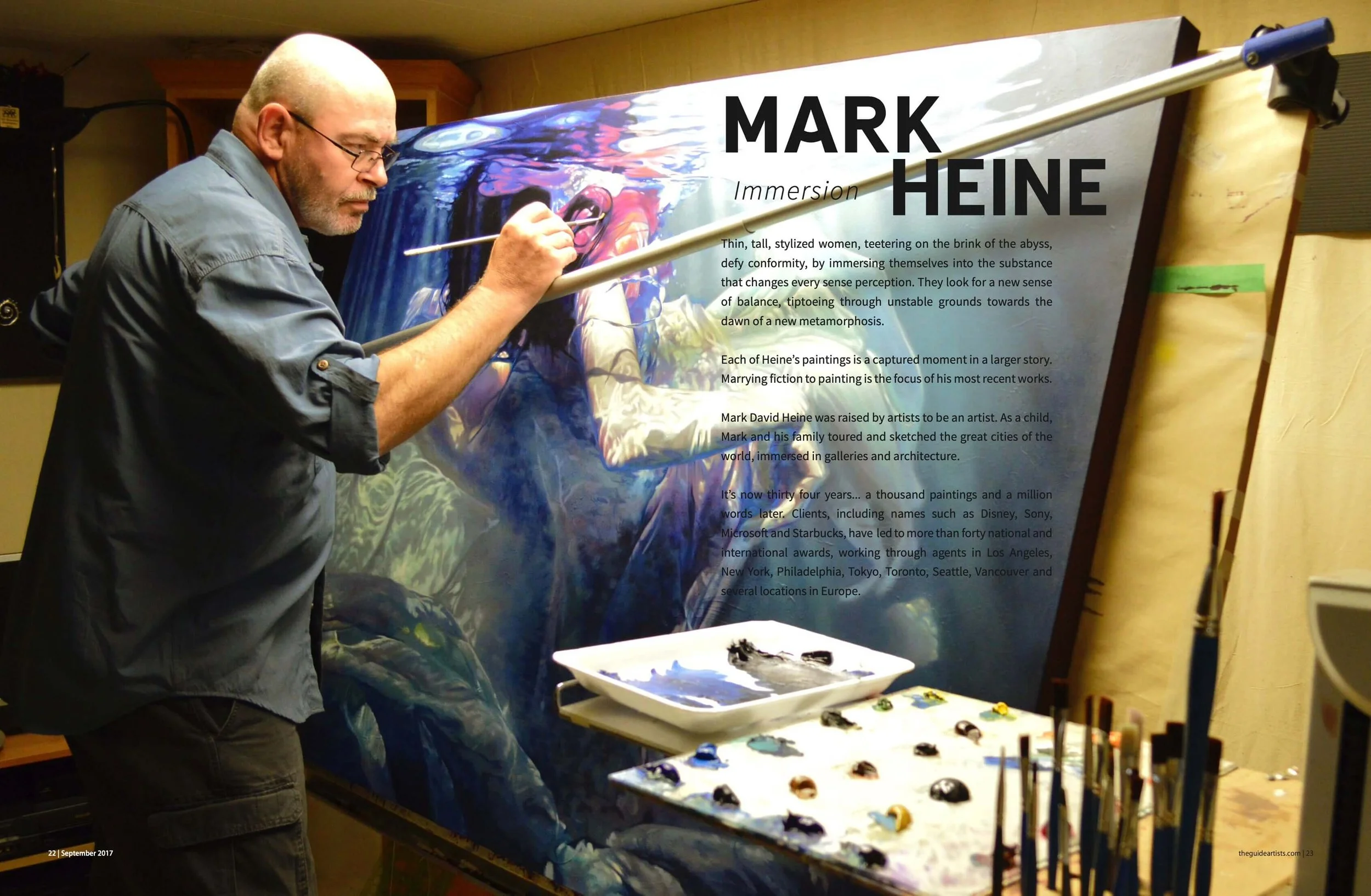 In September 2017, the magazine cover featured Mark Heine, one of contemporary imaginative realism’s leading figures. Raised in a uniquely artistic environment and with an international career spanning over four decades, Heine has developed a body of work where painting and storytelling converge. Celebrated for his technical mastery and ability to create richly symbolic worlds, this issue highlighted not only his painterly skill but also his role as a visual storyteller, foreshadowing his acclaimed Sirens series, where each painting captures a moment from a larger narrative universe.