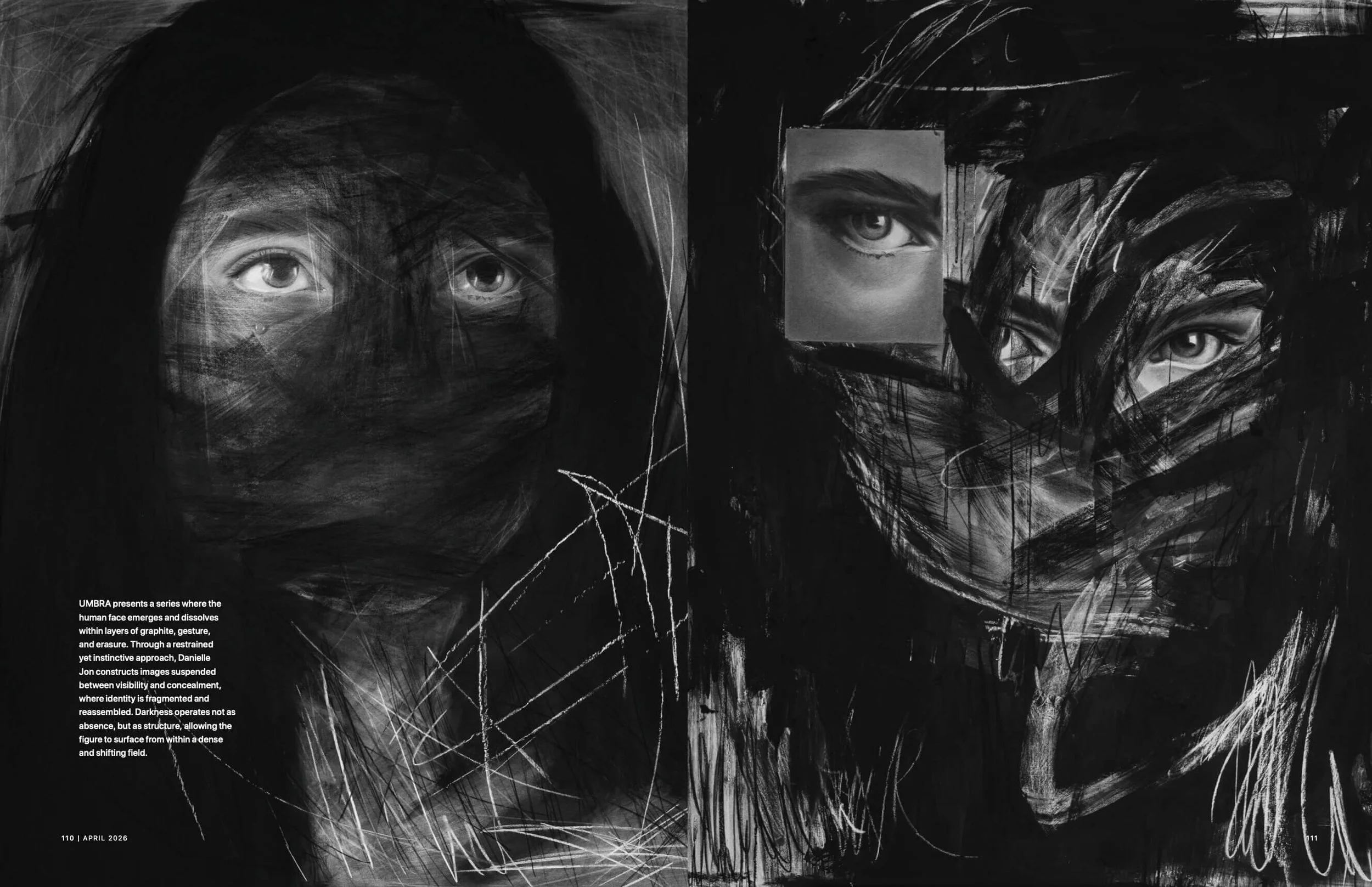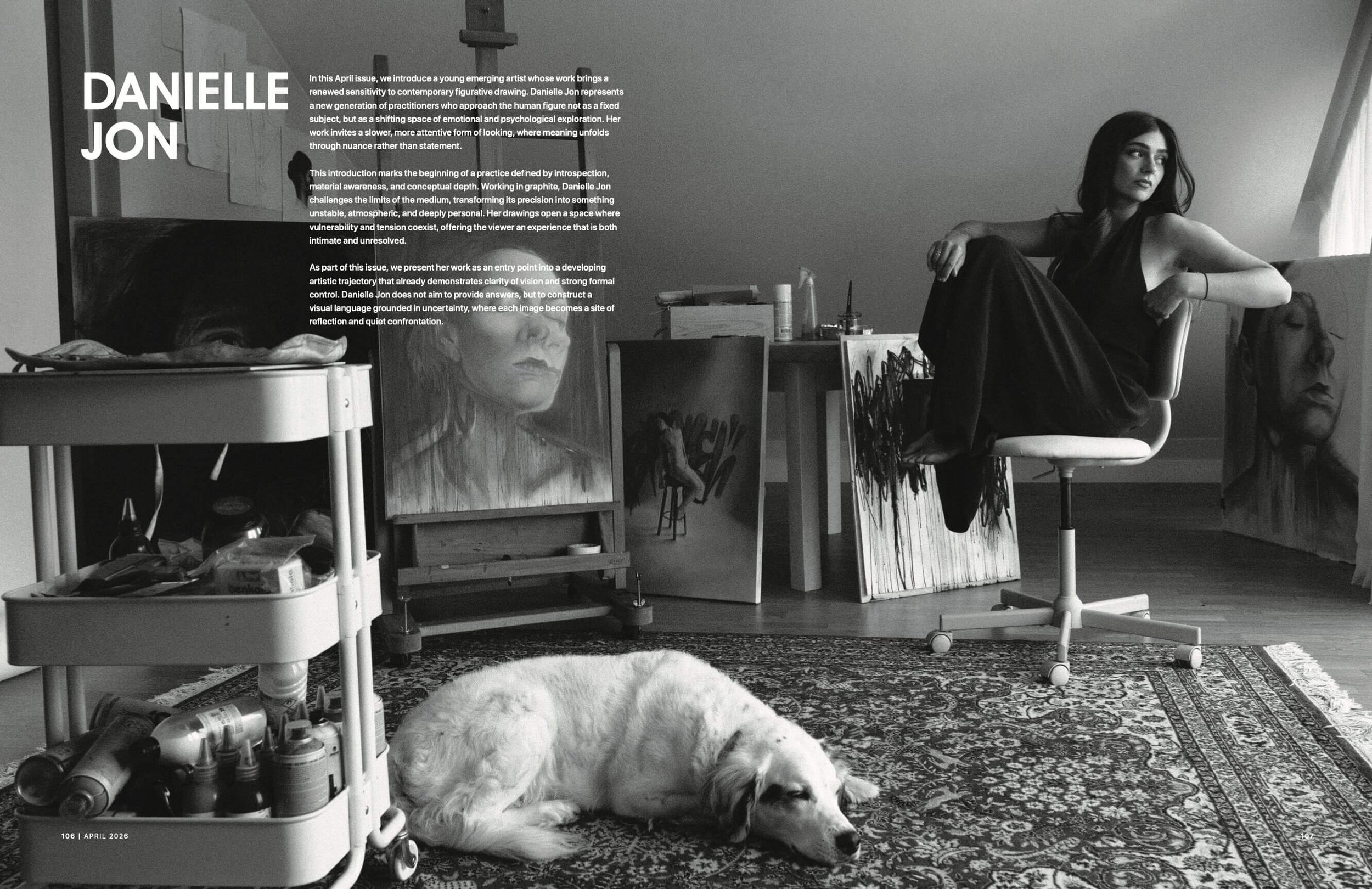 Daniela Ion (b. 1996, Huesca, Spain), known professionally as Danielle Jon, develops a practice grounded in figurative drawing, where graphite on cotton paper becomes a vehicle for psychological and symbolic inquiry. Based in Zaragoza, her work explores identity, vulnerability, and the internal tensions of the body, approached as an emotional terrain in constant transformation.