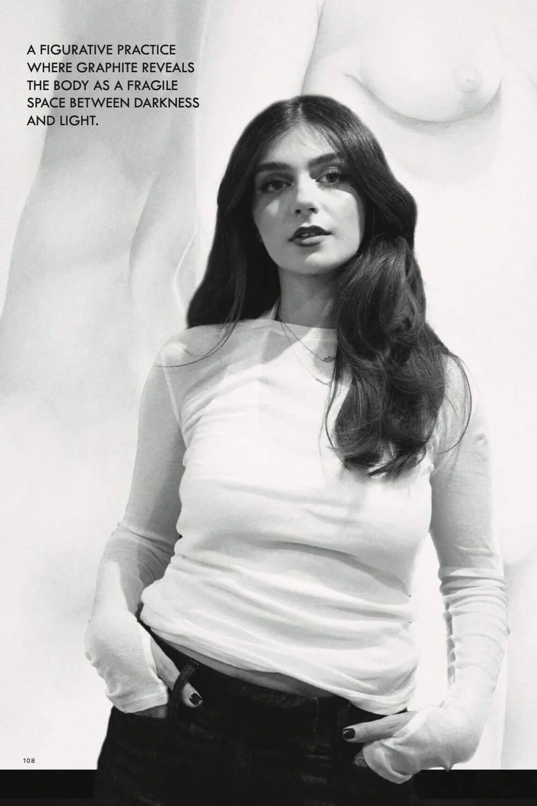 Rooted in personal experience yet open in meaning, her work presents the body not as an idealized form but as a site of fragility and emotional inscription. Influenced by the writings of Rainer Maria Rilke and the work of Jenny Saville, she approaches drawing as a process of dwelling in uncertainty.