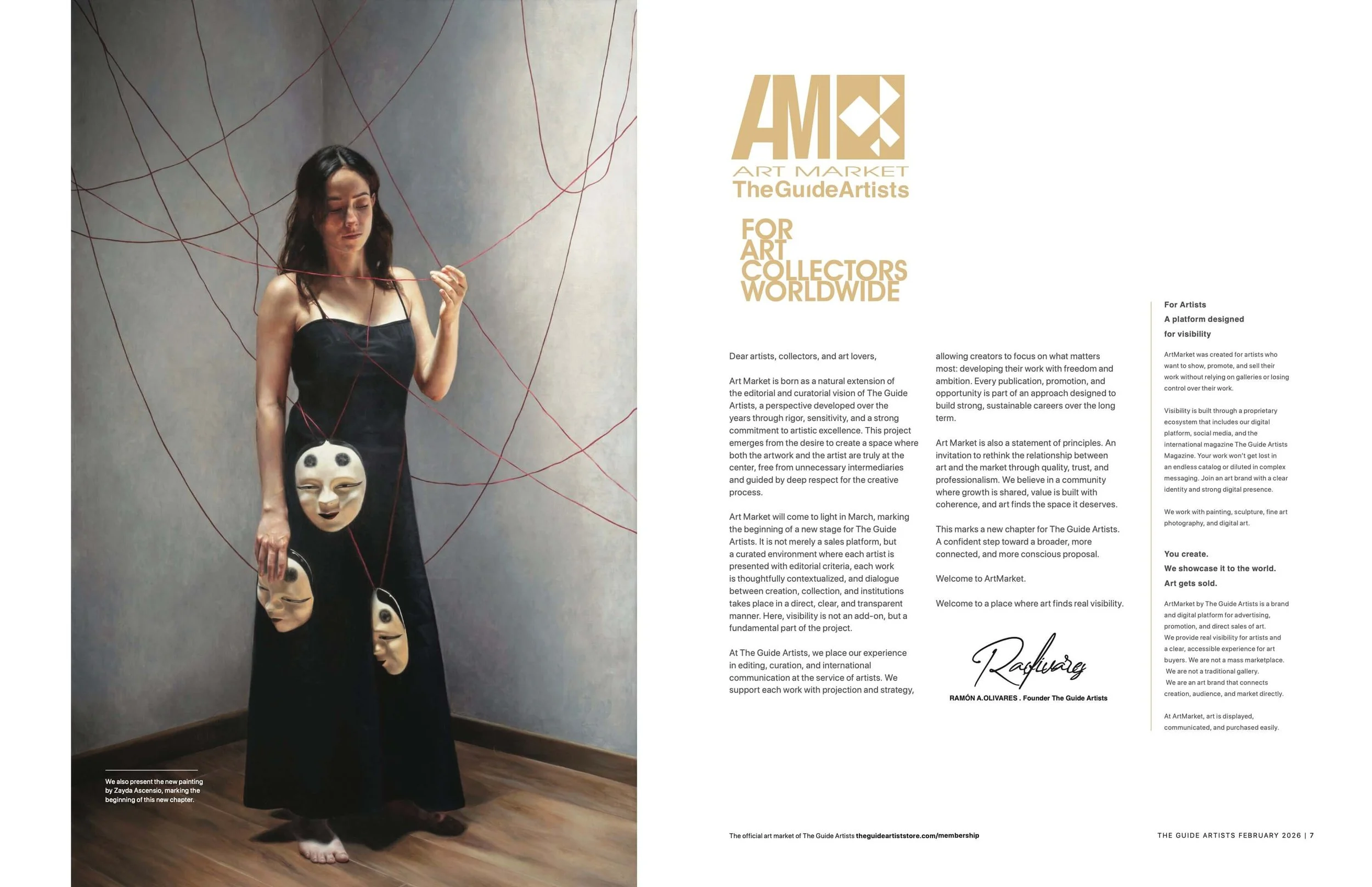 Art Market is born as a natural extension of the editorial and curatorial vision of The Guide Artists, a perspective developed over the years through rigor, sensitivity, and a strong commitment to artistic excellence. This project emerges from the desire to create a space where both the artwork and the artist are truly at the center, free from unnecessary intermediaries and guided by deep respect for the creative process.