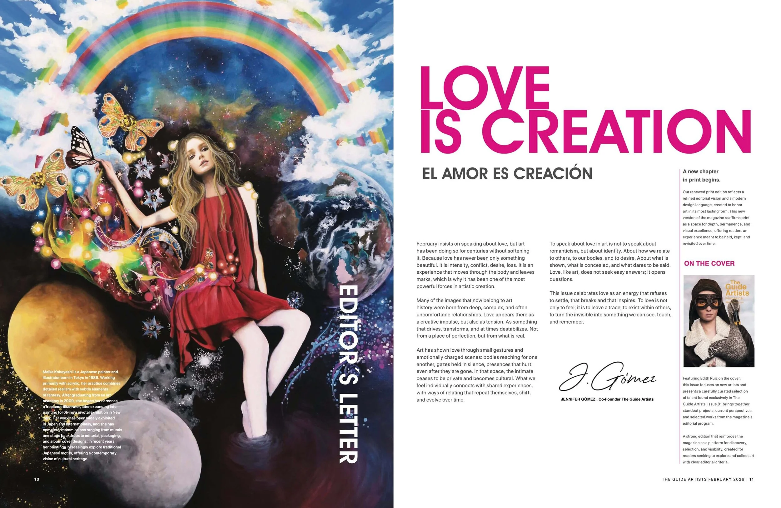Featuring Edith Ruiz on the cover, this issue focuses on new artists and presents a carefully curated selection of talent found exclusively in The Guide Artists.