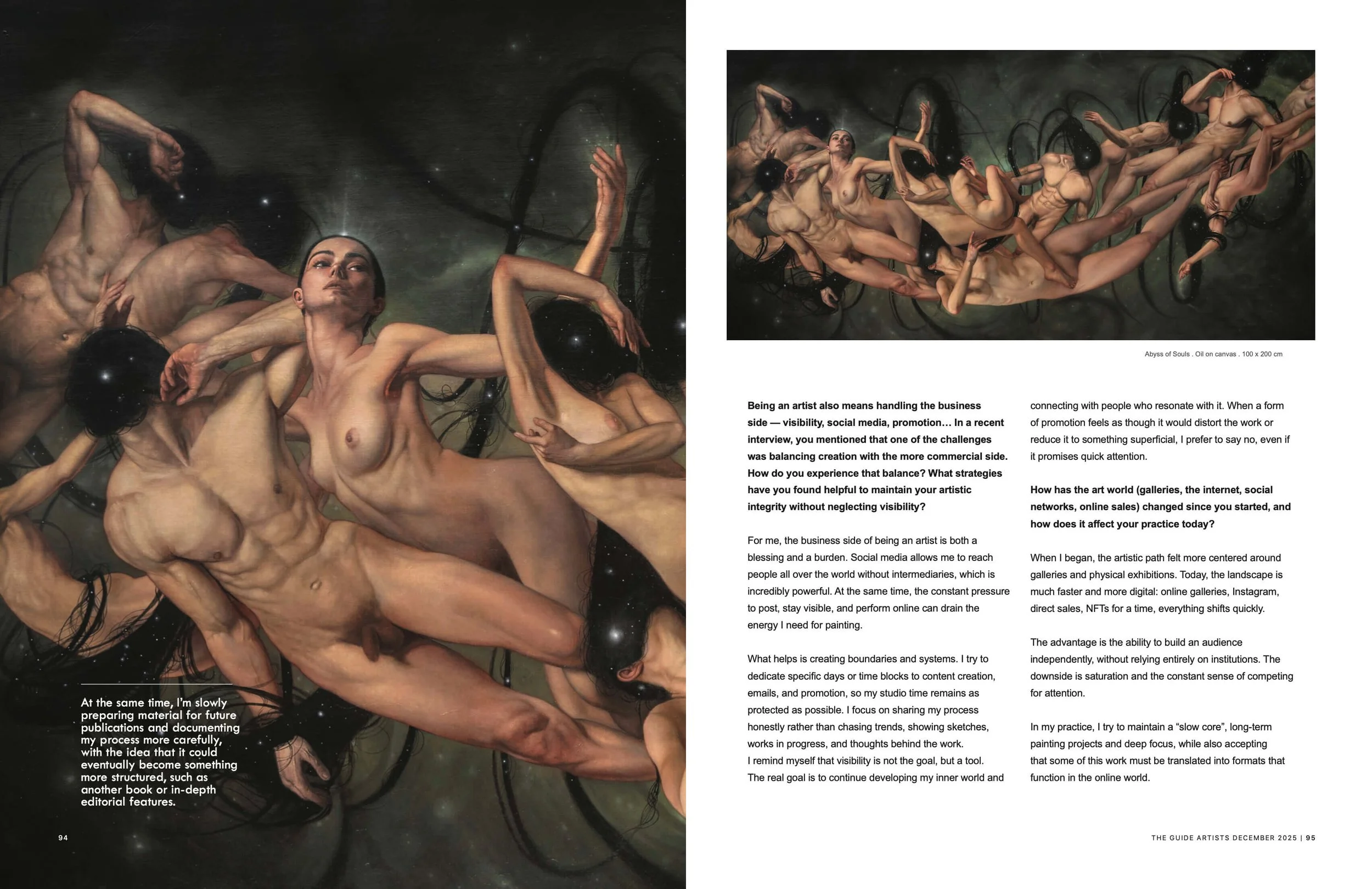 For me, the business side of being an artist is both a blessing and a burden. Social media allows me to reach people all over the world without intermediaries, which is incredibly powerful. At the same time, the constant pressure to post, stay visible, and perform online can drain the energy I need for painting.