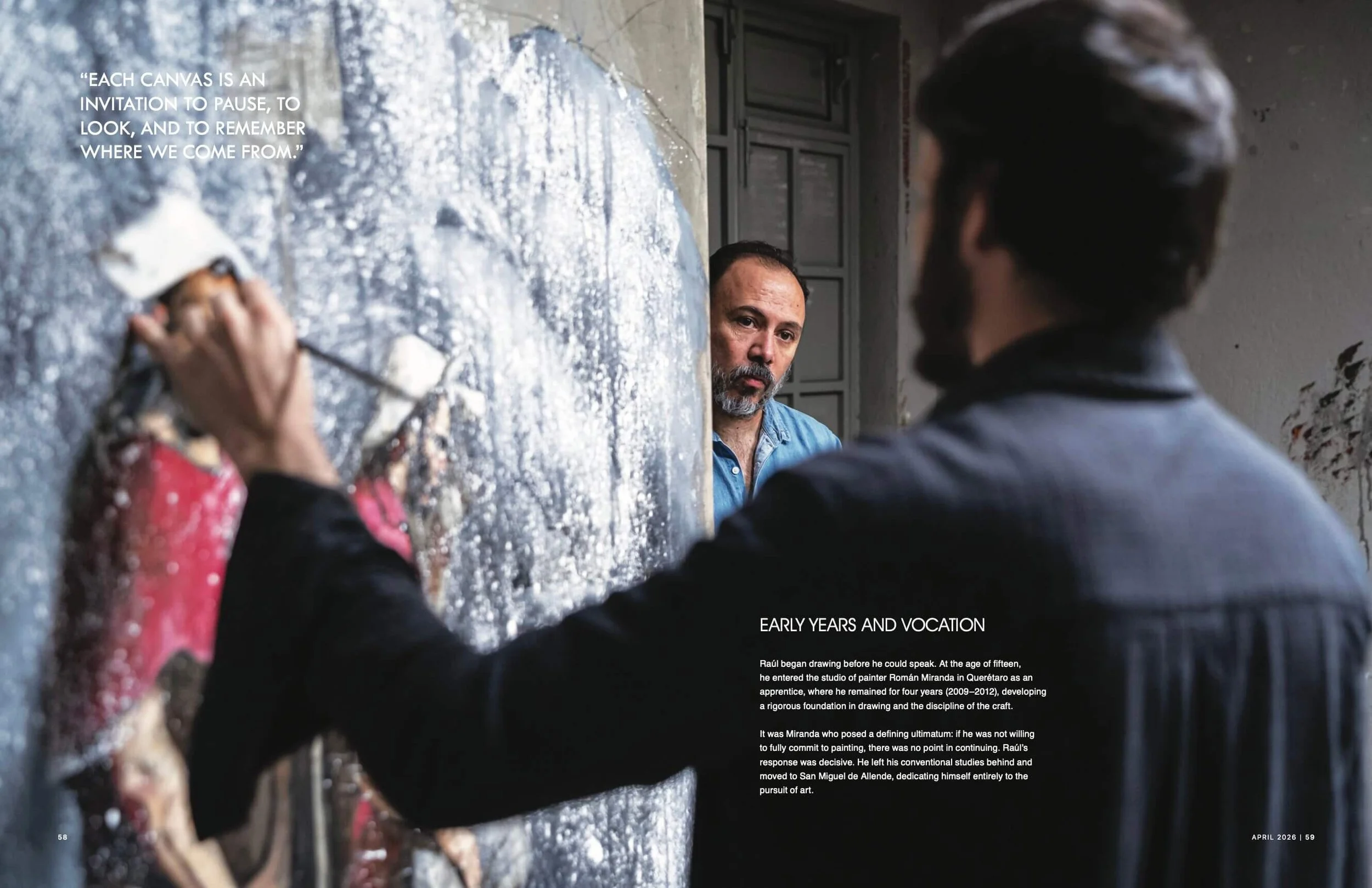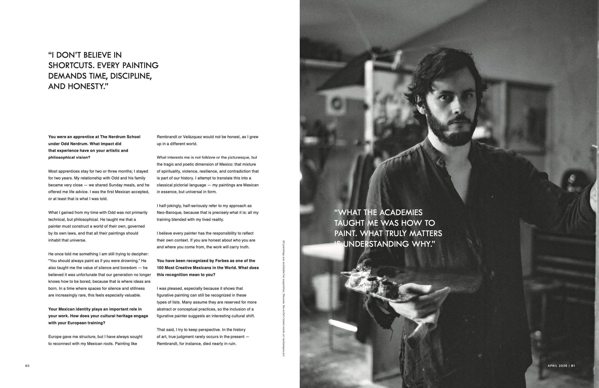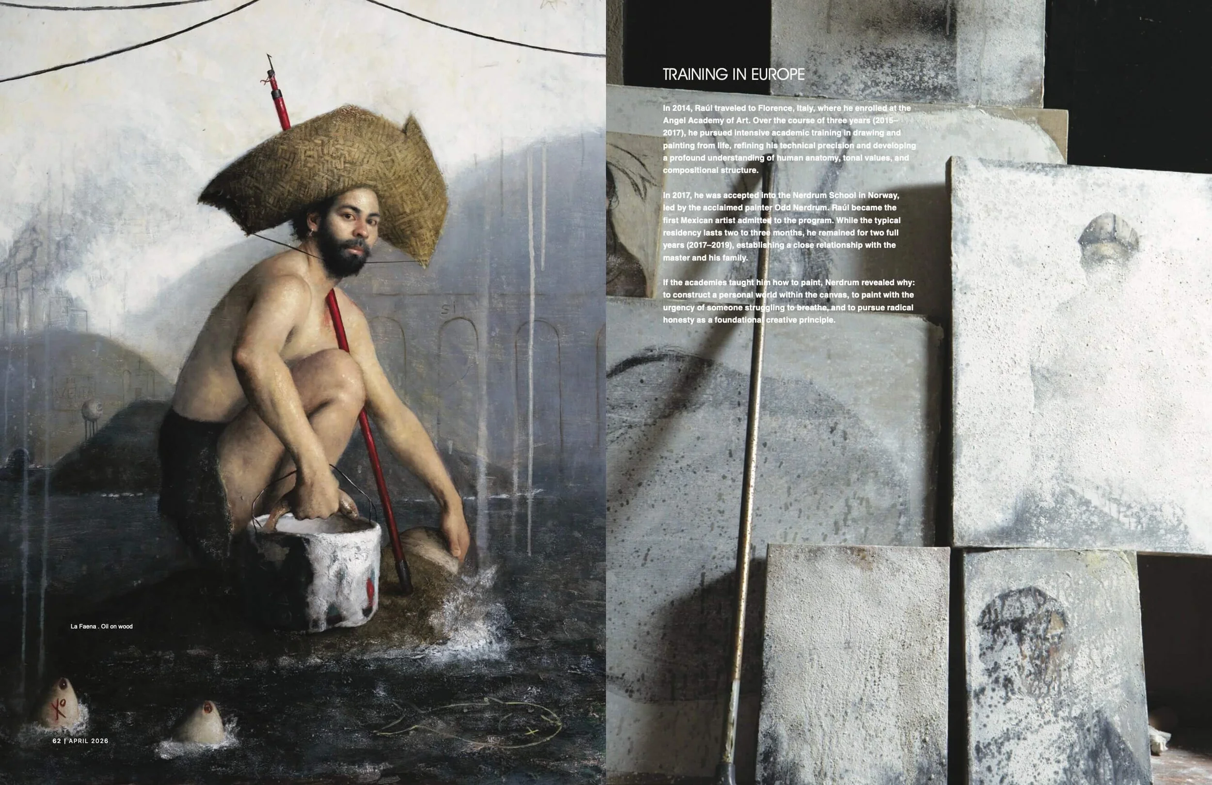 This special issue features Raúl Campos Herrera on the cover with Pensar no ayuda (oil on linen, 2026), a work that encapsulates his disciplined approach to figurative painting. Through a restrained palette, precise composition, and a subtle orchestration of light, Raúl Campos constructs images that explore psychological depth and inner tension with remarkable clarity.