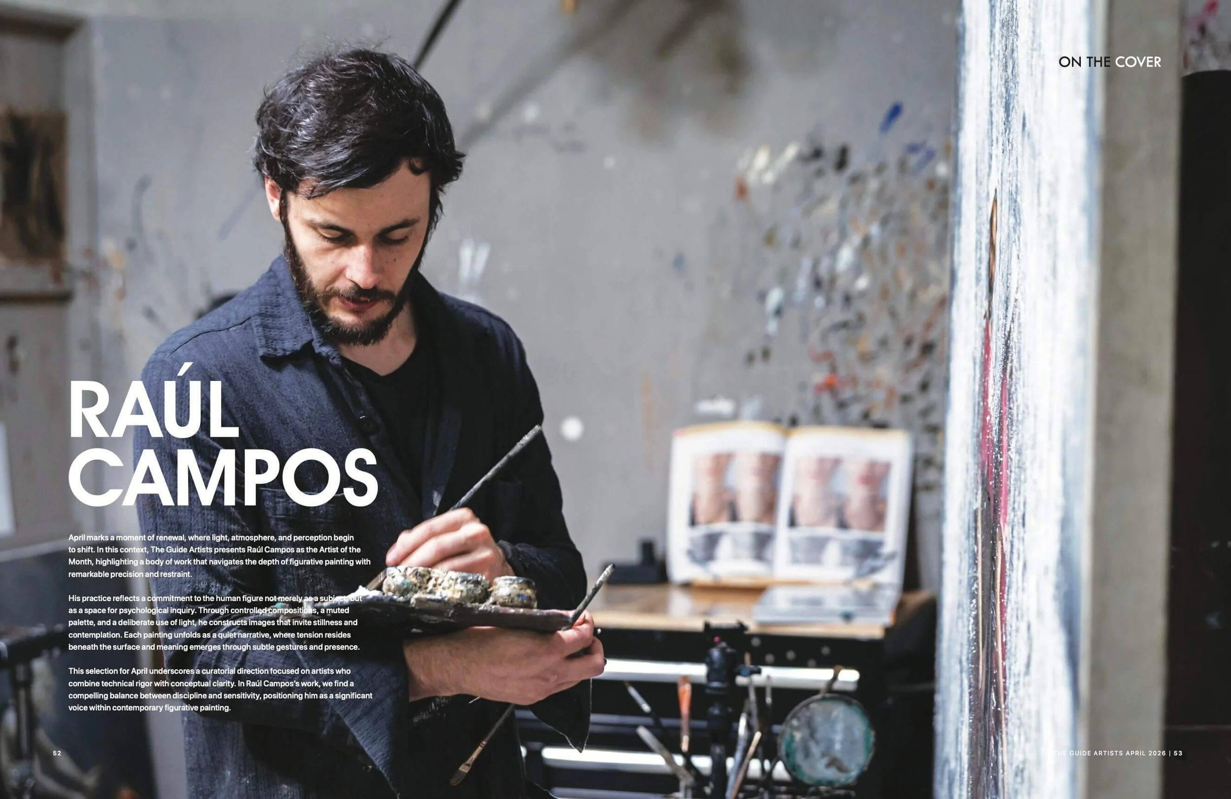 to shift. In this context, The Guide Artists presents Raúl Campos as the Artist of the Month, highlighting a body of work that navigates the depth of figurative painting with remarkable precision and restraint.